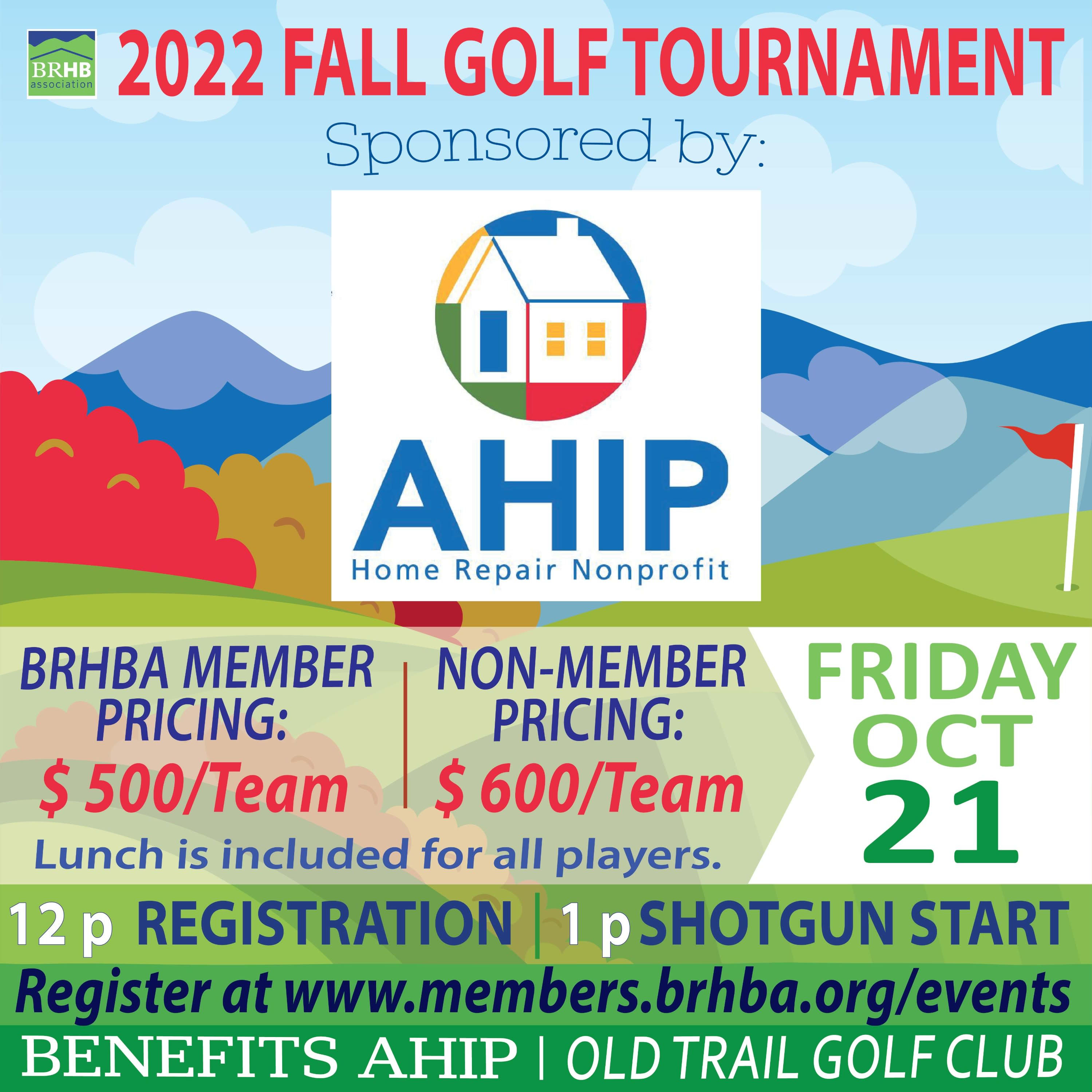 Join us in our Fall Golf Tournament, sponsored by AHIP. This tournament is open to both members and non-members and partial proceeds will benefit AHIP.