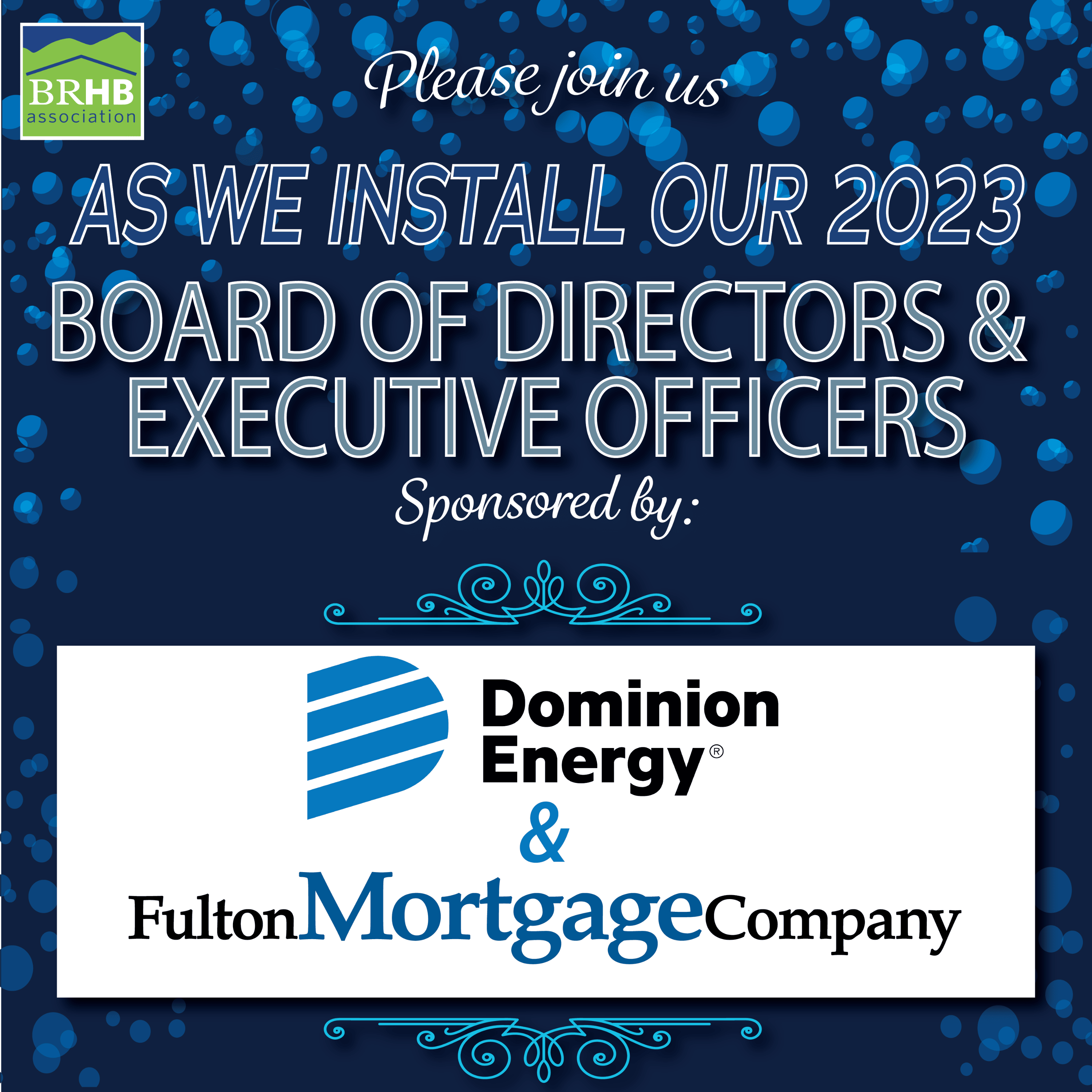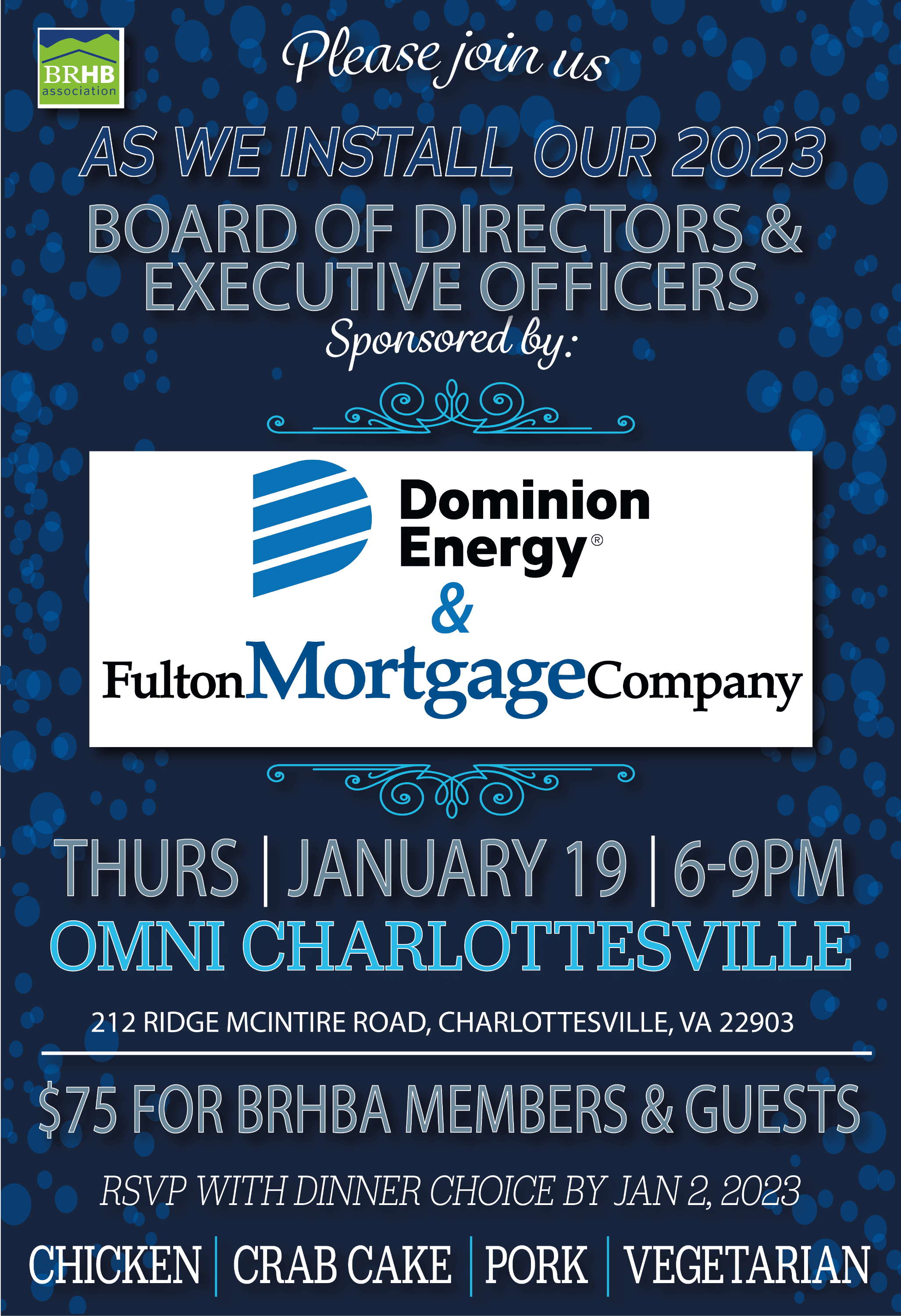 We hope you will join us as we install our 2023 Board of Directors and Executive Officers at our 2023 Installation Dinner, sponsored by Dominion Energy and Fulton Mortgage Company.
