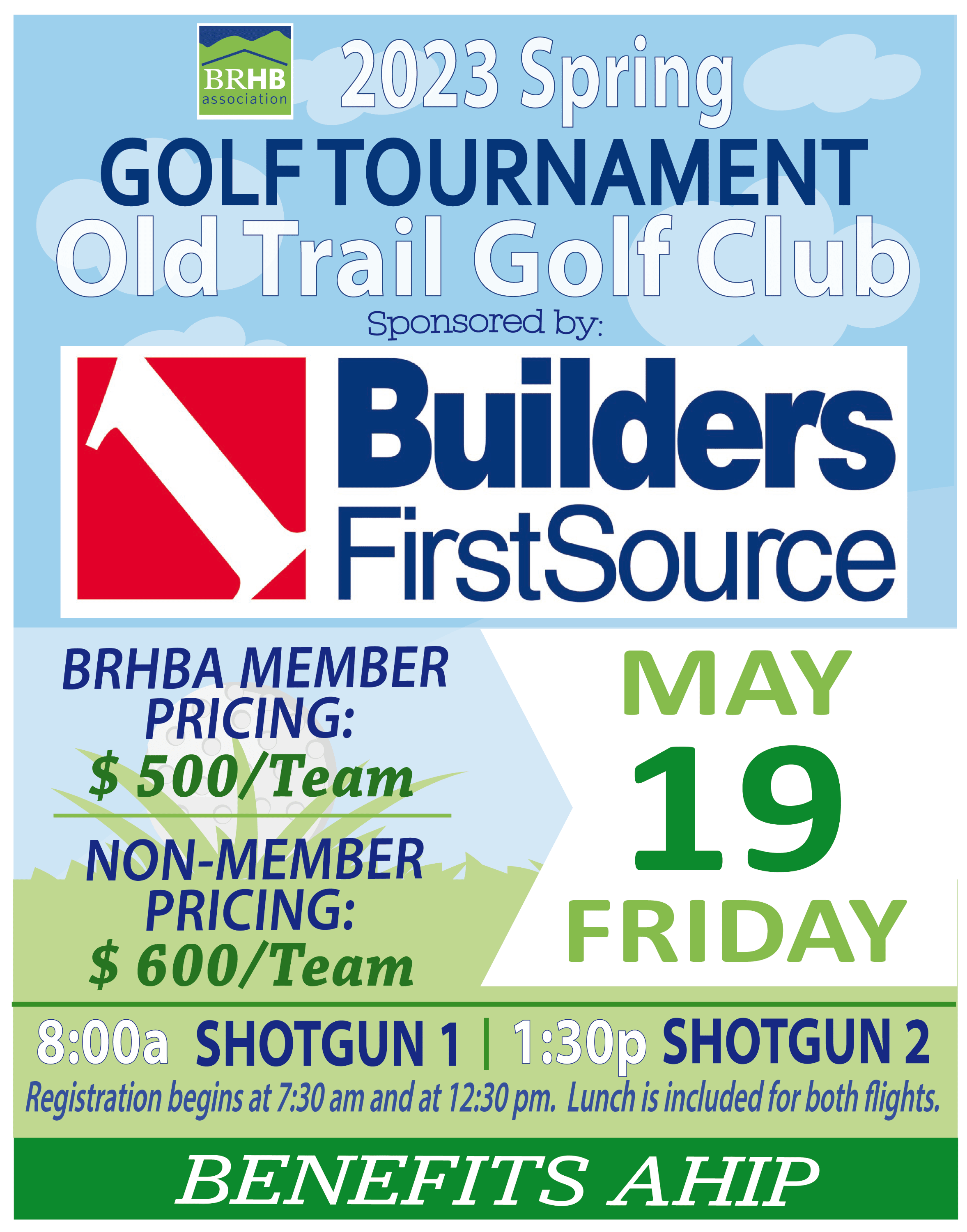 Come join us at the BRHBA Golf Tournament, sponsored by Builders First Source, on Friday, May 19th at Old Trail Golf Club in Crozet.