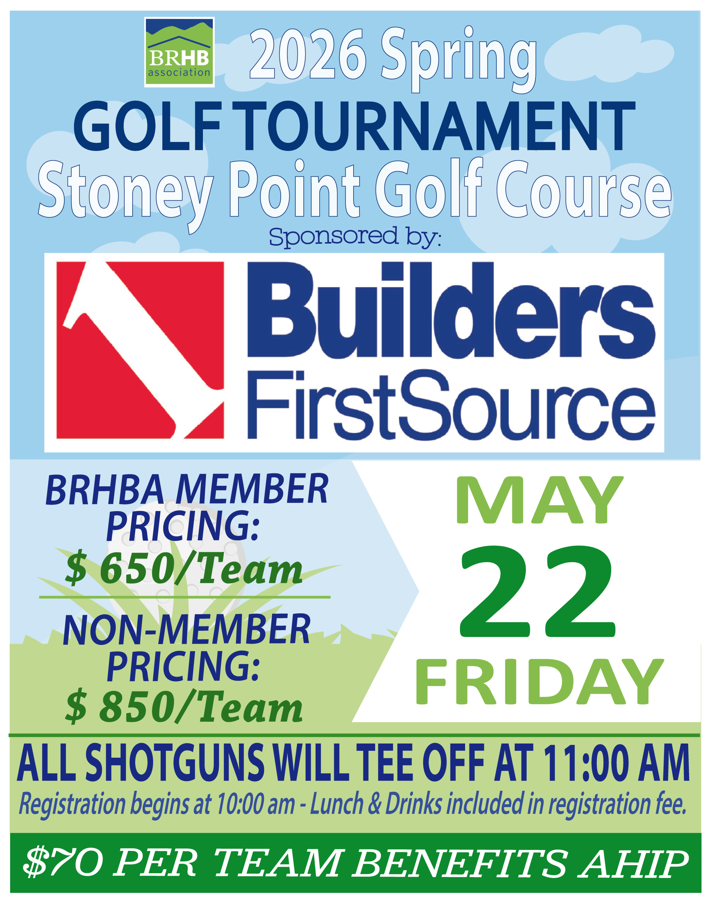 Come join us at the BRHBA Golf Tournament, sponsored by Builders First Source, on Friday, May 22 at Stoney Creek Golf Course at Wintergreen. We will be holding ONE for the Spring Golf Tournament at 11:00 am. All three courses will be open to our group. Registration will begin at 10:00 am. Sponsorship opportunities are available for current members of the Blue Ridge Home Builders Association. Sponsors are WELCOME to join us on the course, so if you would like to become a sponsor for both the spring and fall tournament, choose your sponsorship level under Sponsorship Opportunities when you register your team. While we are allowing non-members to register a team for the tournament, please keep in mind that sponsorships are for MEMBERS ONLY. Thank you and we look forward to seeing you there!